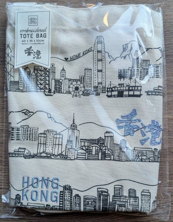 Embroidered Tote Bag - Hong Kong Skyline (Canvas)